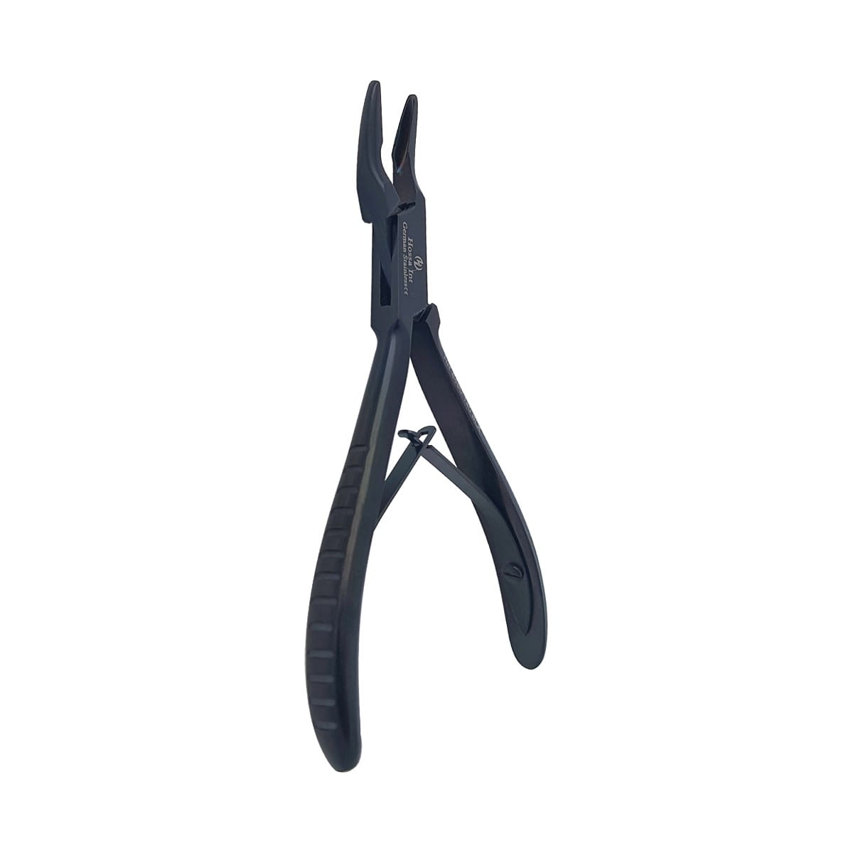 The Luer bone biter bent 14 cm with a black, titanium coating is a tool used in the profession by dentists, maxillofacial surgeons and veterinarians. The instrument allows for smoothing the sharp edges of the alveolar process. Specially profiled, thin beaks allow for precise surgery. The working part in the shape of elongated spoons, grooves, contacts each other with sharpened edges, allowing for perfect smoothing of the maxillary and mandibular bones.